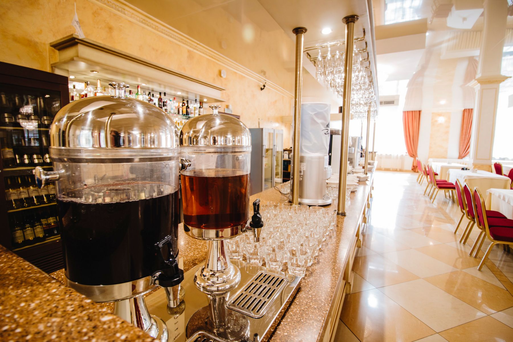 Насладитесь праздником в роскошном ресторане, где вас ожидает классически оформленный зал, способ вместить до 500 человек. Это идеальное место для проведения любого торжества. Зал оснащен современной звуковой и световой аппаратой, которая подарит вашему мероприятию еще больше праздничного настроения.
