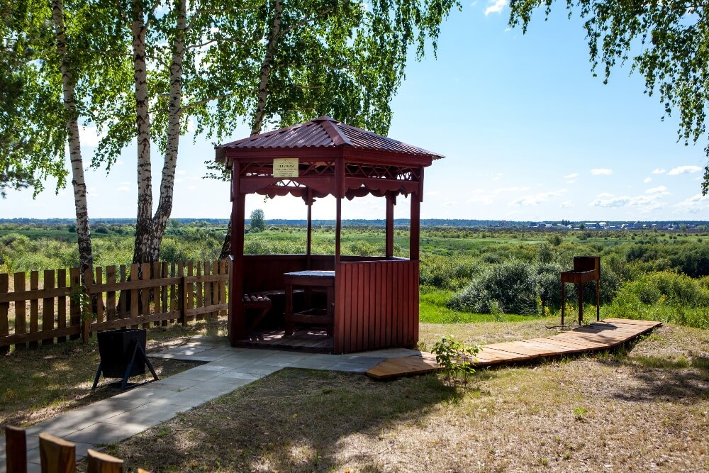 • беседки на берегу реки Пышма в сосново-березовом лесу.