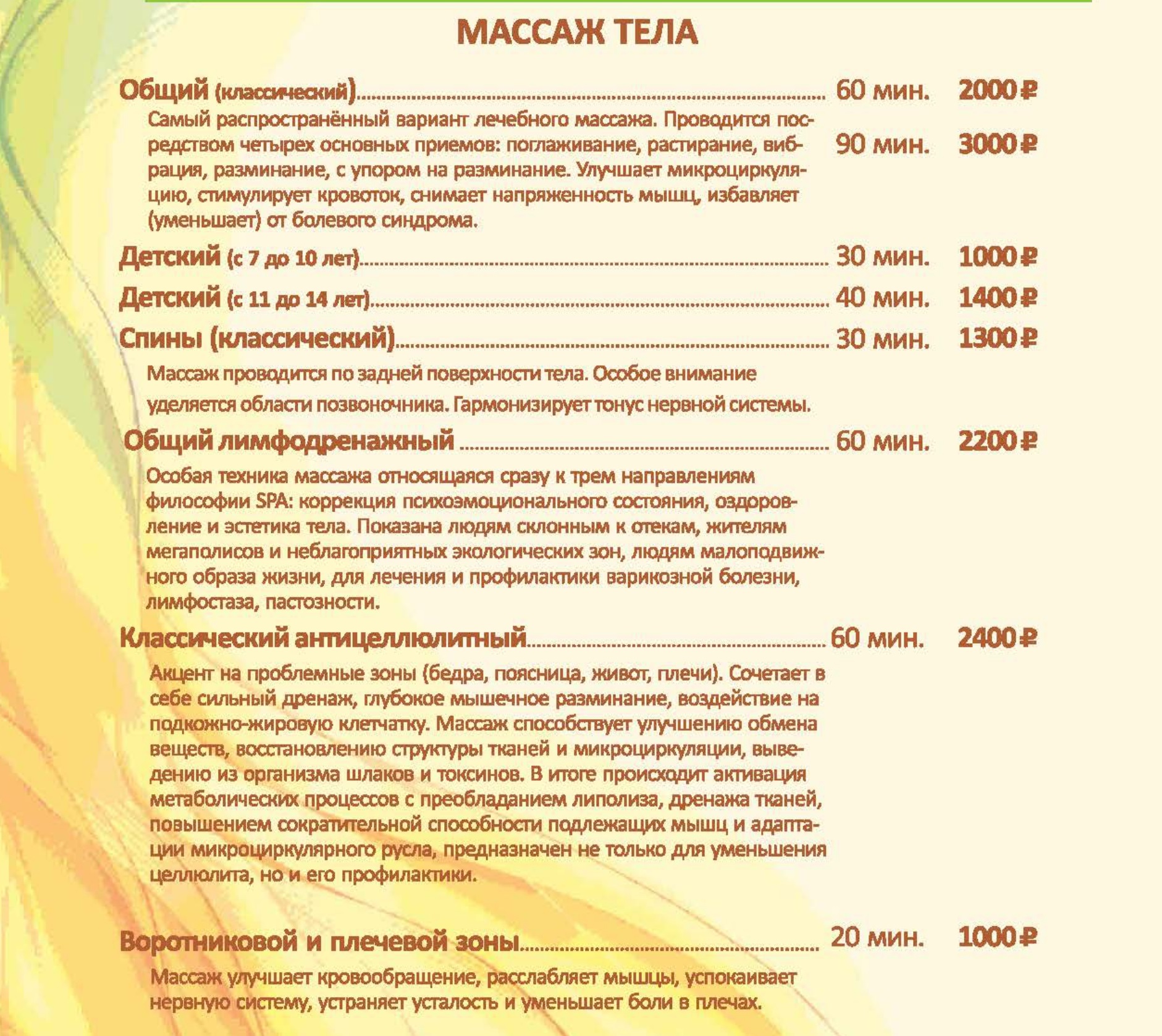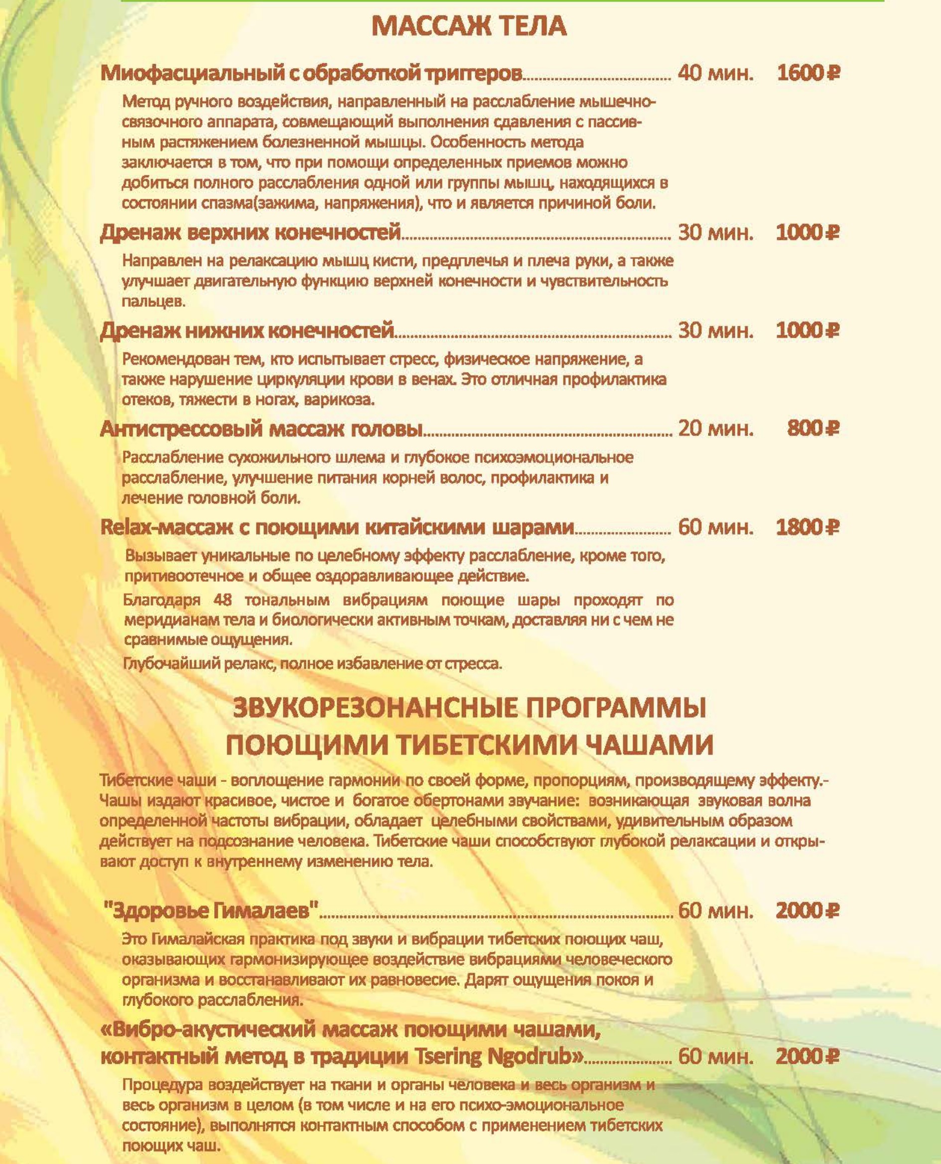 Цены на СПА услуги