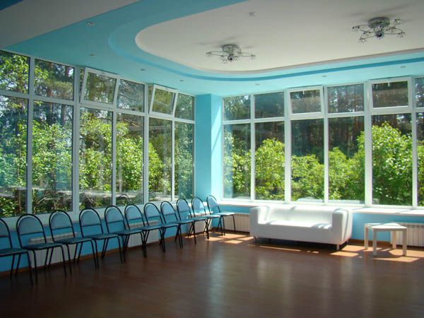 В номере: кровать полутороспальная, прикроватные тумбочки, стол, стулья, шкаф, диван, телевизор, холодильник, чайный набор посуды