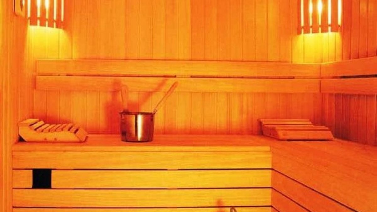 В номере: кровать двуспальная, прикроватные тумбочки, стол, стулья, шкаф, набор мягкой мебели, телевизор, холодильник, кондиционер, чайный набор посуды, сауна
