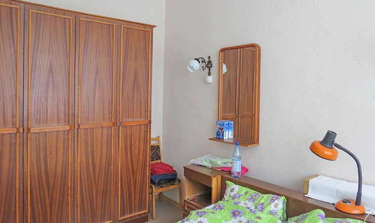В номере: вешалка, зеркало, кровати односпальные, прикроватные тумбочки, тумба, шкаф, раскладушка на доп. место