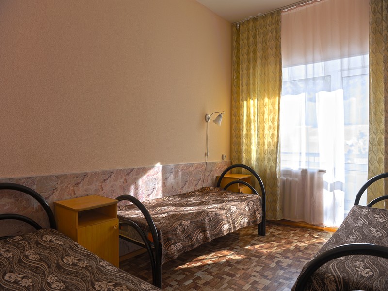 В номере: 3-и кровати, стол, стулья, вешалка, зеркало, ТВ, холодильник.