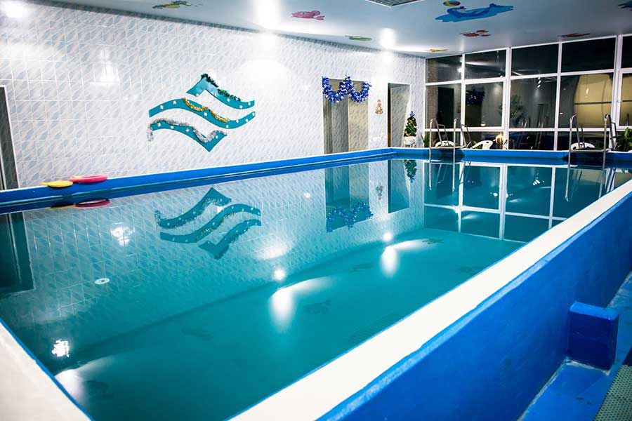 - детский бассейн крытый, длина – 11 м, ширина - 6м, глубина – 80-110 с, вода пресная, пользование бассейном входит в стоимость, работает круглогодично