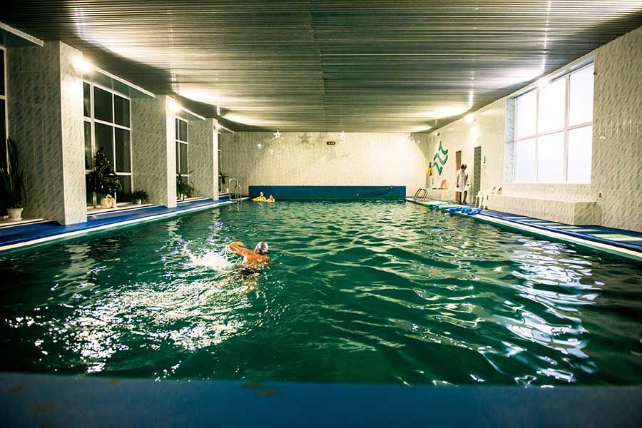 - длина - 25 м, ширина – 10 м, глубина – 110-170 см, вода минеральная, пользование бассейном входит в стоимость, работает круглогодично